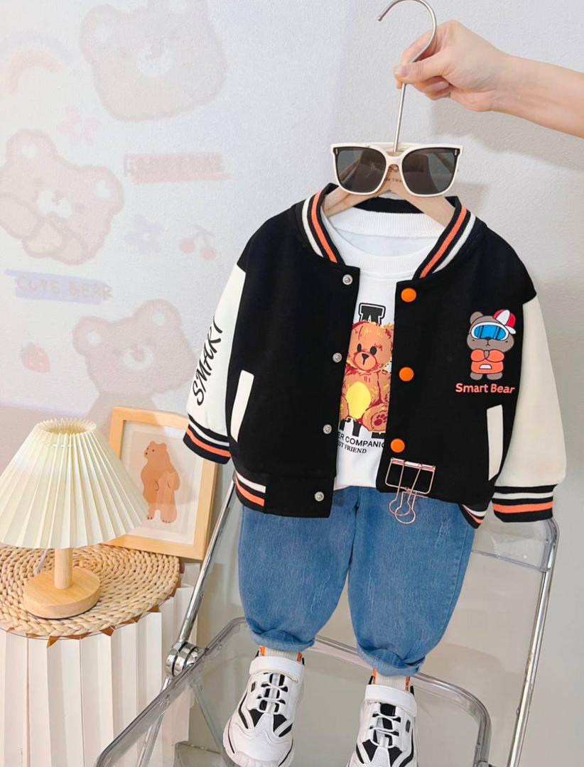 ست وارداتی سه تیکه يه ست بچگونه جذاب بايه بامبر خفن يه بلوز داخلش و شلوار لى مام عالى👌👌 ✅كيفيتی بى نظير😊سايز حدودا : 1تا5 سال