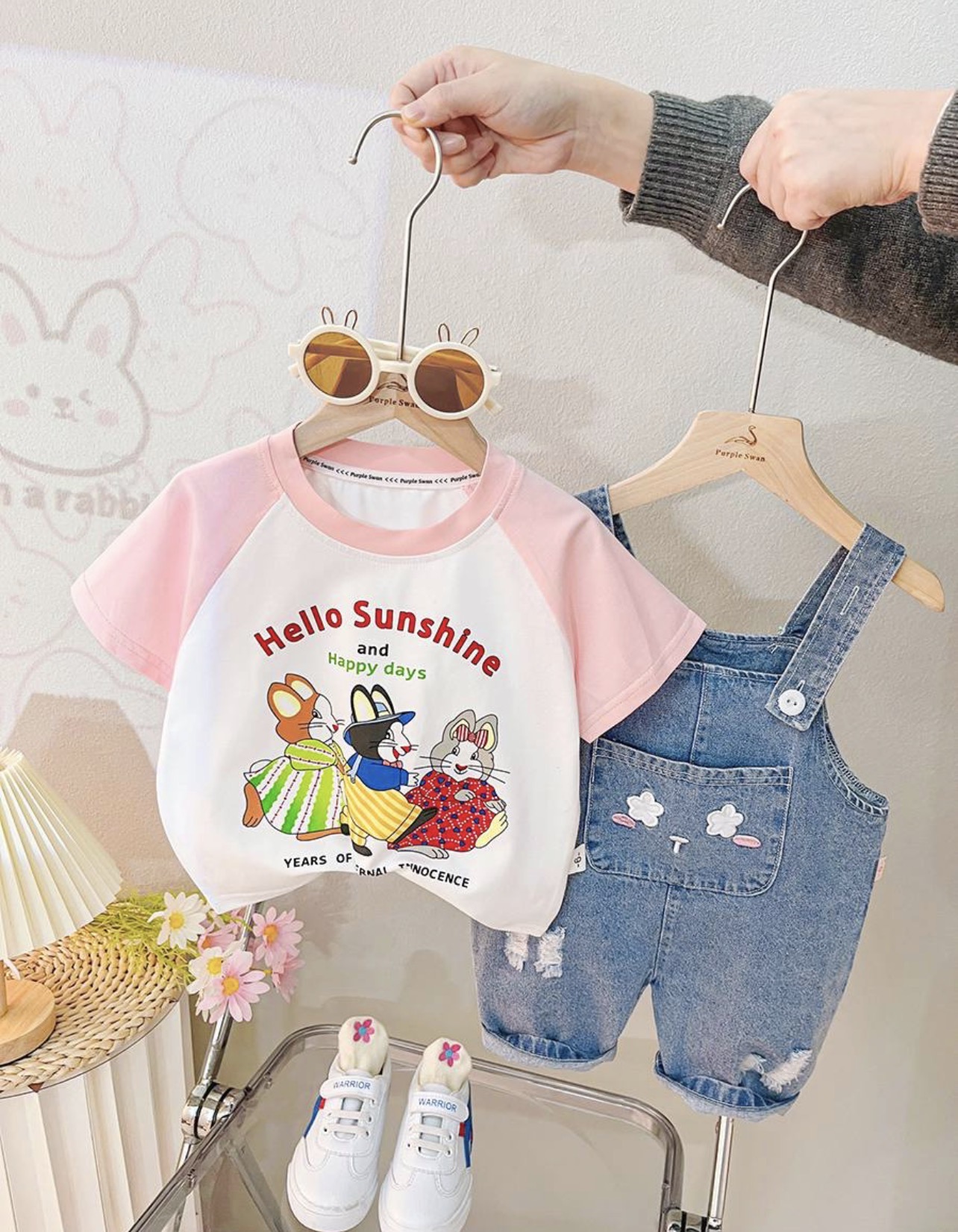 ست بیلر و تیشرت خرگوشی وارداتی و اورجینال از نه ماه تا پنج سال جنس بیلر جین اورجینال جنس تیشرت نخ پنبه