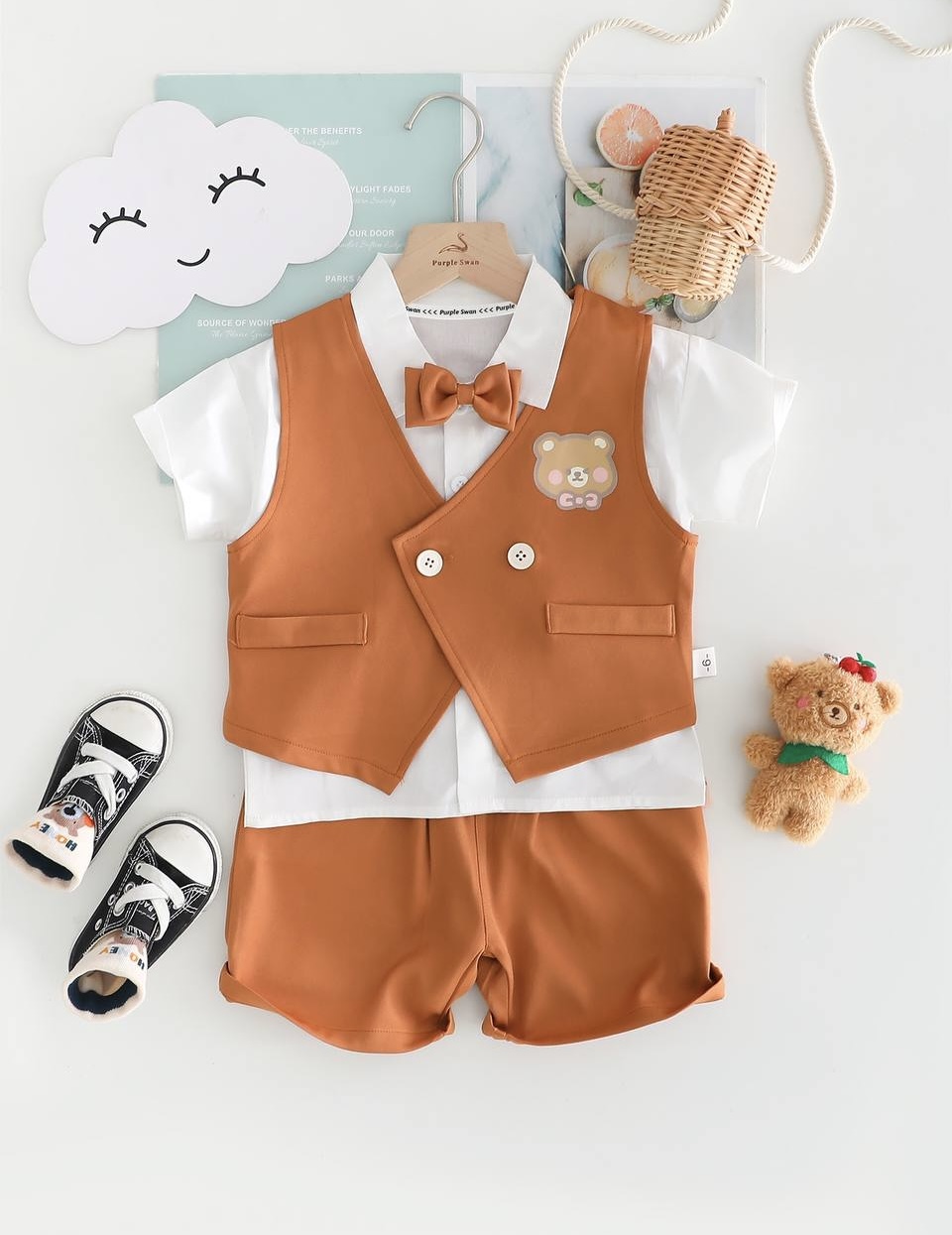 ست پينترستى وارداتى مجلسى مناسب 9 ماه تا 5 سال وارداتى و اورجينال ست چهار تكه وارداتى مجلسى مناسب بهار وتابستان جنس بلوز نخ پنبه جليقه و شلوارک كرپ عالى مناسب عروسى تولد آتليه مهمانی پاپيون قابل جدا شدن براى اندازه زدن كافيه لباس دلبندتون رو روى زمين يهن كنيد واندازه ها را با اطلاعات لباس كه در راهنمای سایز بندی هست چک کنید