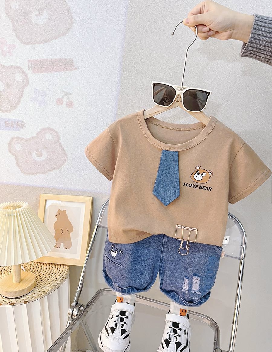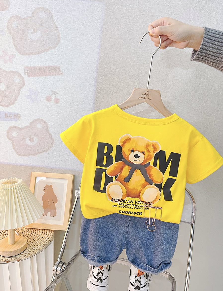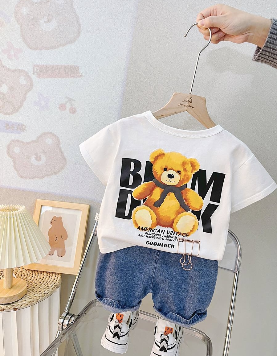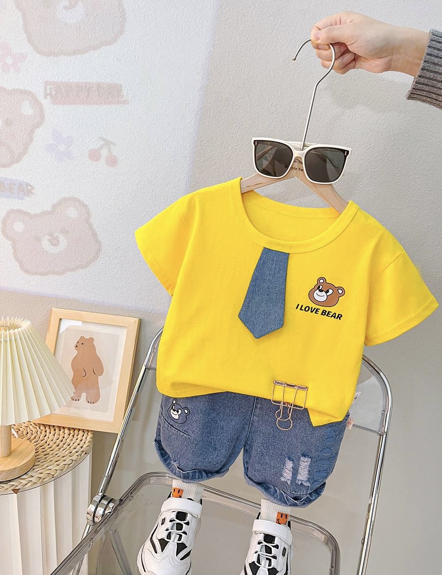 جنس تيشرت نخ پنبه بسيار نرم و سبك درجه يك جنس شلوارك جين صدد رصد اورجينال سايز بندى : ٩ ماه تا 5 سال