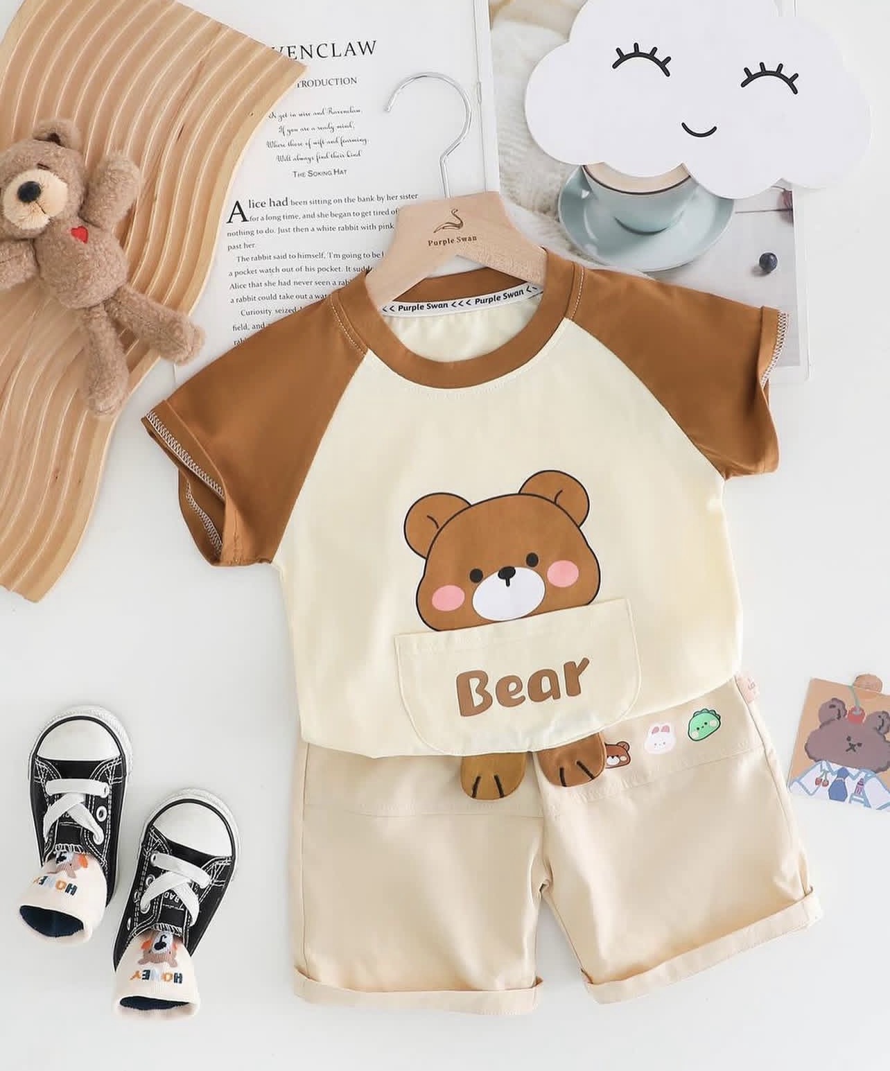 وارداتى اورجينال با بهترين كيفيت مناسب دختر و پسر مناسب ٩ ماه تا تقريبا ۵ سال جنس تیشرت نخ پنبه جنس شلوارک کتان کاغذی